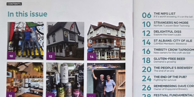 All the regular features, plus a trove of articles on Delightful Diss, brewing and brewers, gluten-free beer, our summer social to Bury St Edmunds, St Albans City of Ale and your guide to upcoming beer festivals across the county and beyond!