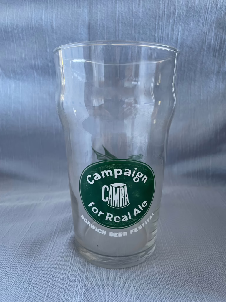 Thr glass did not have a date on it, only the campaign logo at the time, and had the Snap Dragon on the rear, the first occurrence of this Norwich traditional figure.