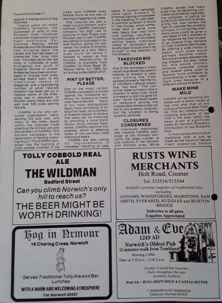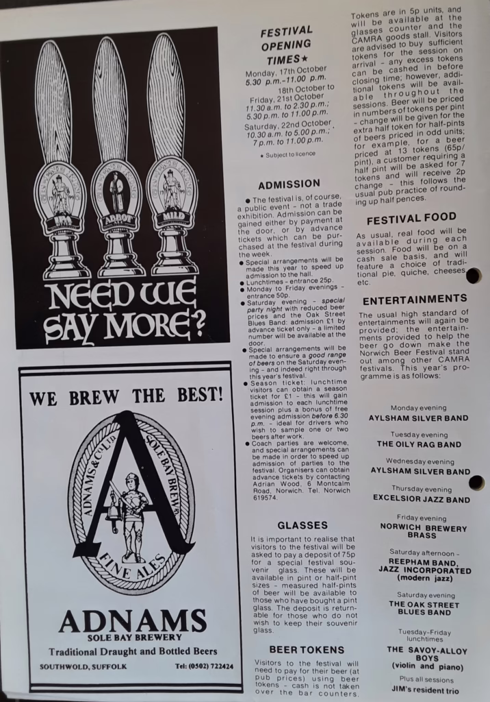 Thanks to Barry Wilkinson for these images of the 1983 Beer Festival Programme.